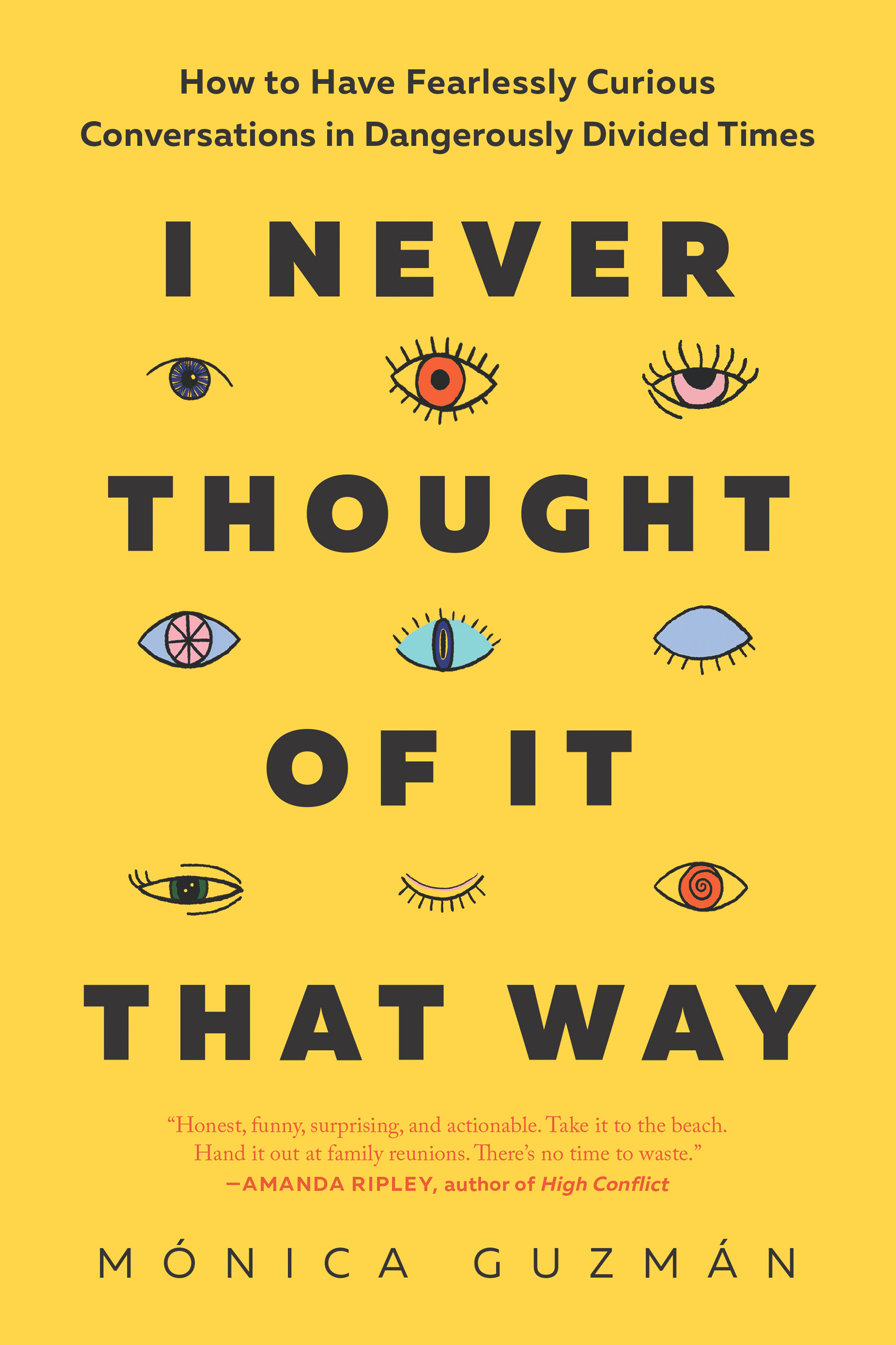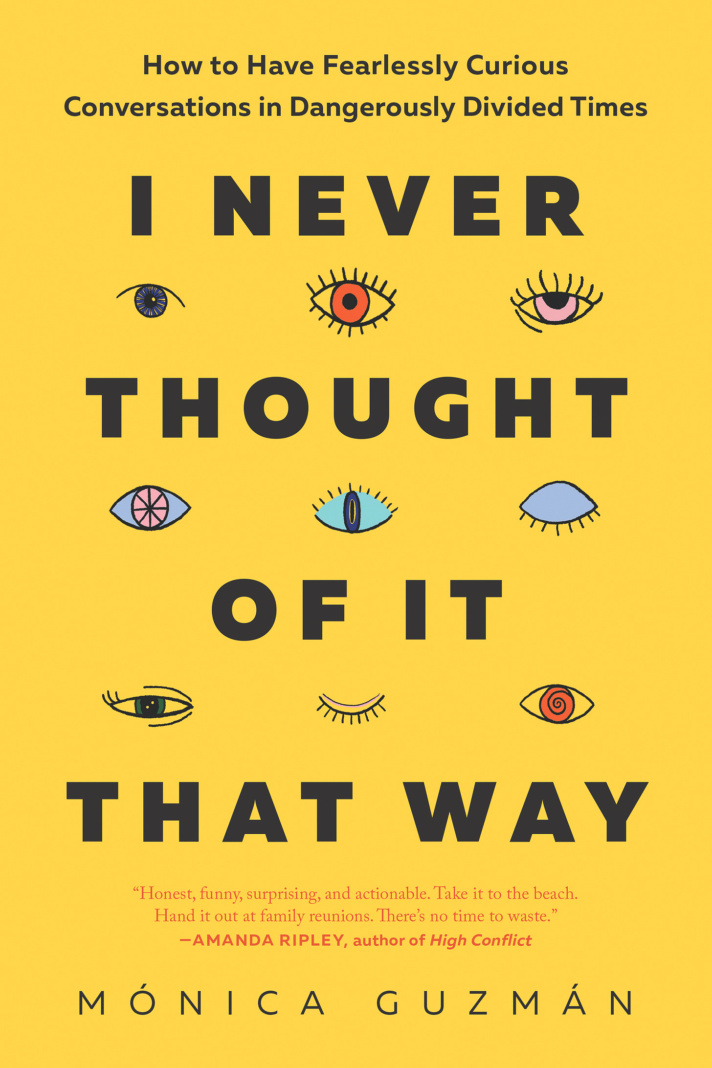 Mónica Guzmán is the Seattle journalist we met last month, in a Q&A conversation about challenging polarization. She’s a director at Braver Angels, a grassroots organization that works to heal polarization, and a former fellow at the Nieman Foundation for Journalism at Harvard University. Her new book, I Never Thought of It That Way: How to Have Fearlessly Curious Conversations in Dangerously Divided Times, is as energizing and inspiring as it is practical.