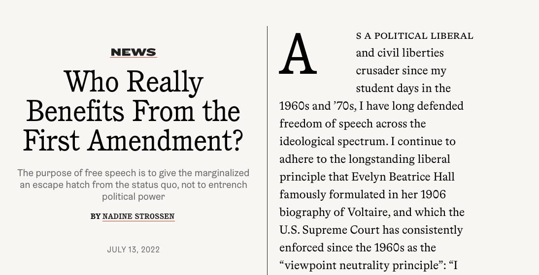My guest on the podcast today has written a new piece for Tablet Magazine arguing that, in fact, this trend is not particularly new. The essay is titled “Who Really Benefits From the First Amendment?,” and it takes a look back in history at attacks on free speech originating on the left — and stresses that the left needs to remember that free speech is essential for minority rights.